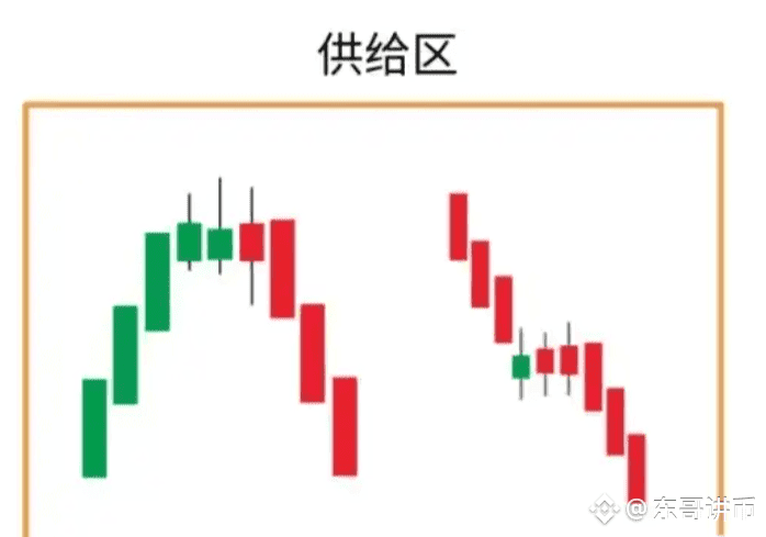 供给区则与需求区相反。我们预期价格会在这里下跌,回撤到需求区位置时卖出。