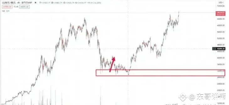 当时就是一个很好的入场位置,而且在这个需求区形成后不久,价格多次回到需求区,即当时30000美刀的位置)那这个需求区很可能会是一个很好的交易机会。