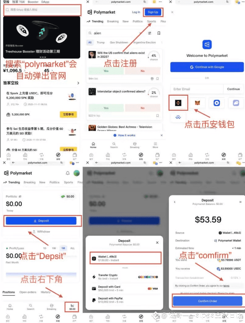1. 用钱包直接注册,将钱包资金转入Polymarket页面。