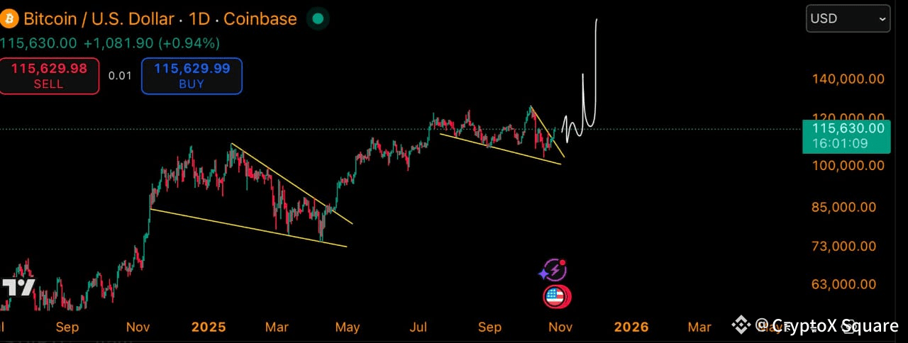 With the broader market regaining confidence and institutional activity increasing, Bitcoin appears poised for a year-end surge. If the wedge breakout confirms, it could mark the start of another parabolic leg, echoing the early 2025 structure.