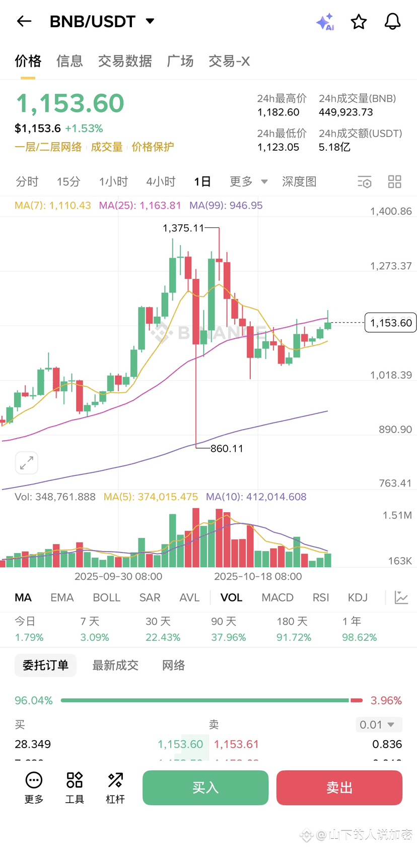 想识破庄家底牌?链上数据显示BNB在1100下方存在巨量买单,12亿美元销毁只是开胃菜,主力吸筹才是正餐!👇