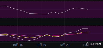 Kdj上看,目前kdj来到了70上方,距离80也没多少距离了,这里突破80大概率会继续拉升,突破不了就可能直接掉头下来了,kdj上看也是来到了临界点附近。