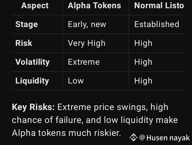 The table below summarizes the key differences that contribute to the higher risk of Alpha tokens.
