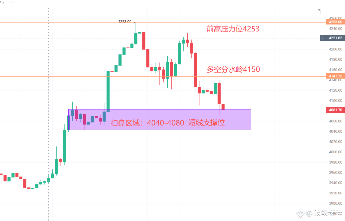支撑位: 4040-4080 区间。这是近期横盘扫盘的关键地带。若价格跌破此位且无法迅速收回,则短线偏弱格局确认。