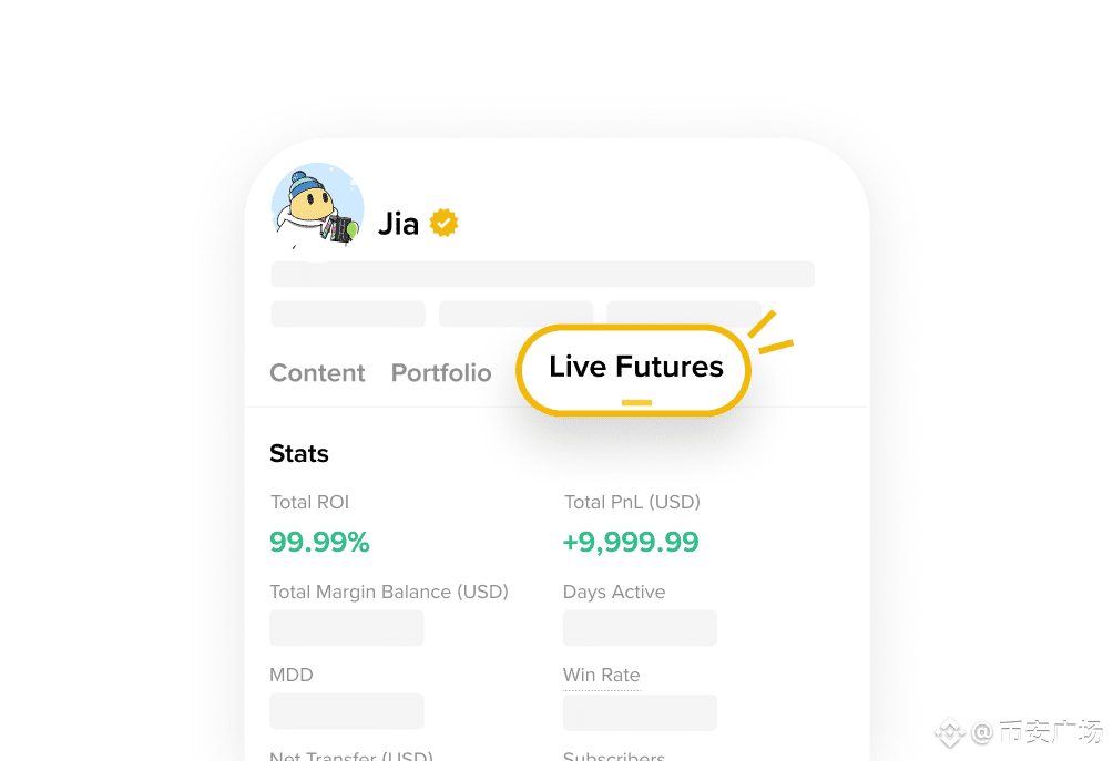 合约实盘主页: 实时分享合约账户表现,包括累计收益率(ROI)、总盈亏金额(PNL),当前仓位及近期操作记录,增强透明度与信任感。