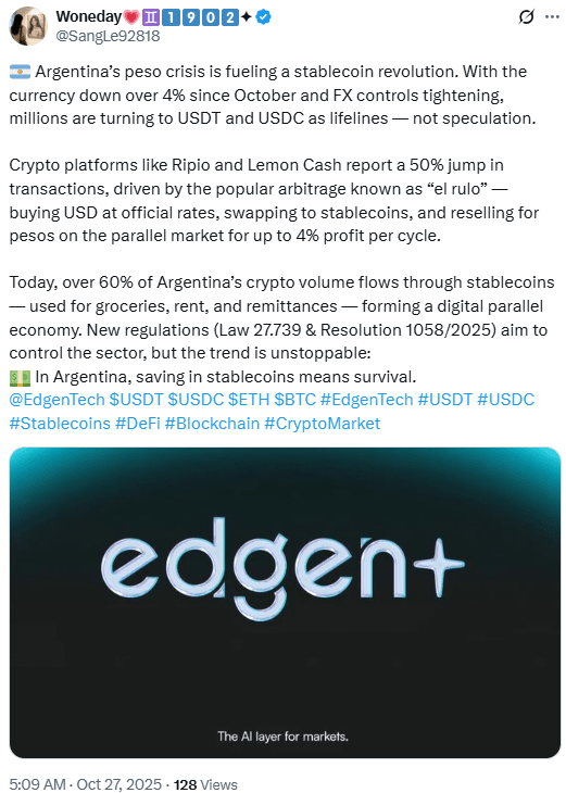 “稳定币成为了国家情绪的镜子,”一位Lemon发言人说。“加密美元不再仅仅是对冲——它是阿根廷政治和经济脉搏的实时温度计。”