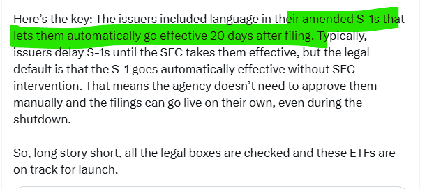 狂野部分?这发生在政府关门期间,因为发行人使用的S-1申请语言在提交后20天自动生效。法律默认是S-1在没有SEC干预的情况下自动生效。这意味着该机构不需要手动批准它们,这些申请可以在没有干预的情况下自行生效,即使在关门期间。