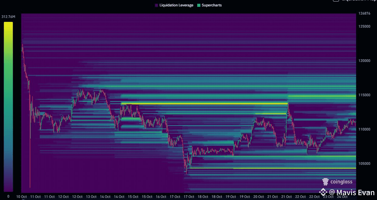 But here’s the twist: that very stagnation is what fuels the next explosion. The longer Bitcoin moves sideways, the more liquidity builds just outside the range. Every untriggered liquidation. Every stop-loss waiting to be hit. They become dominoes waiting for the first to fall.