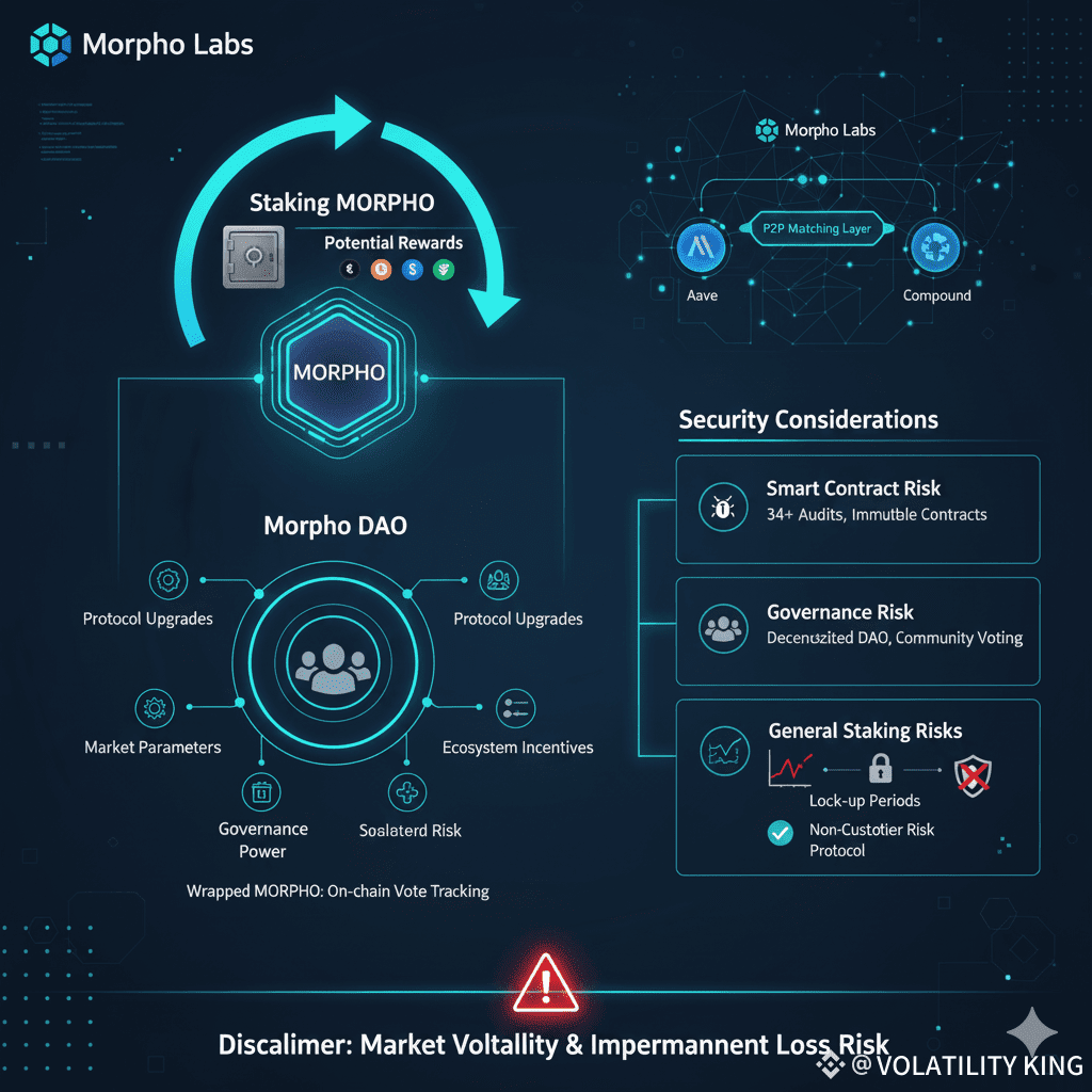 Security remains central to Morpho’s foundation. The protocol has undergone more than 34 audits by 14 security firms, with immutable, minimalist smart contracts and continuous bug bounty initiatives enhancing reliability. Yet, users must remain cautious of governance manipulation, market volatility, or lock-up risks linked to staking platforms.
