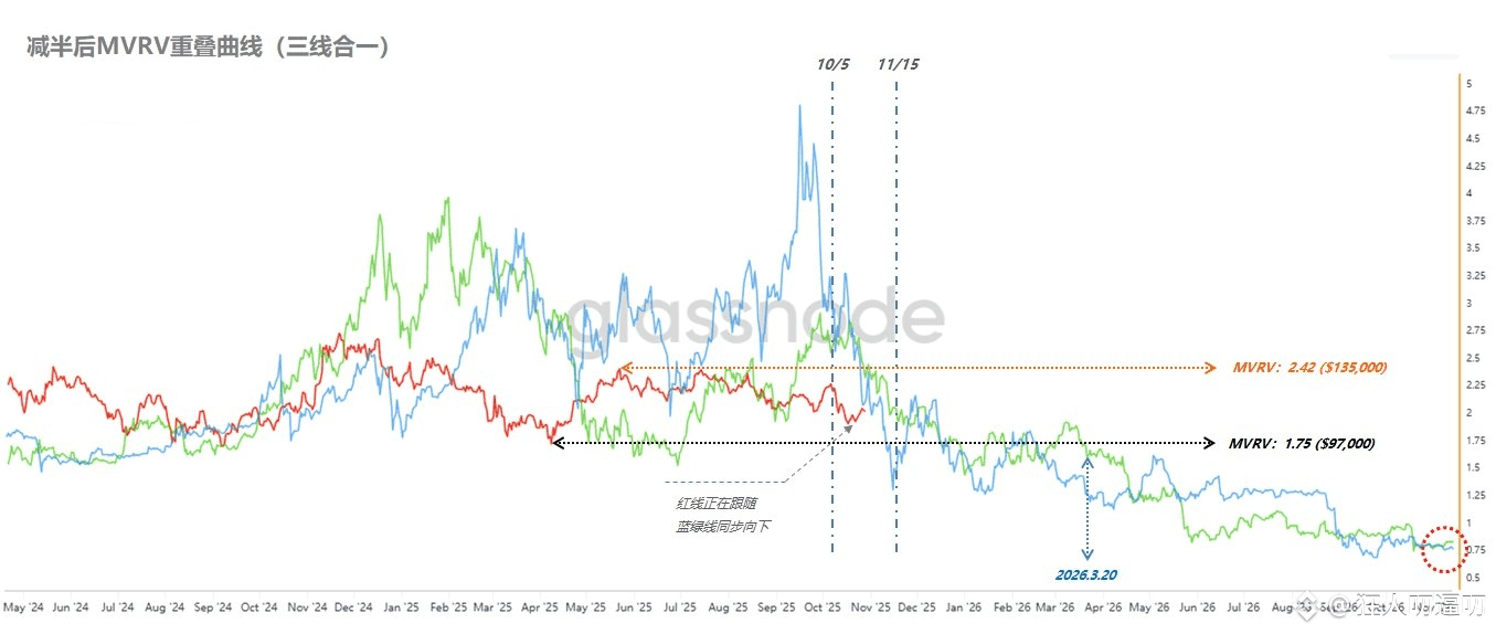 当然,也不排除另一种可能——市场依旧遵循时间脚本运行。如果如此,那么下一轮深度回调的周期或将在2026年3月20日开启,届时MVRV可能跌破1.74,甚至触及1以下的极值。历史告诉我们,那正是长期投资者“逆风布局”的最佳窗口。