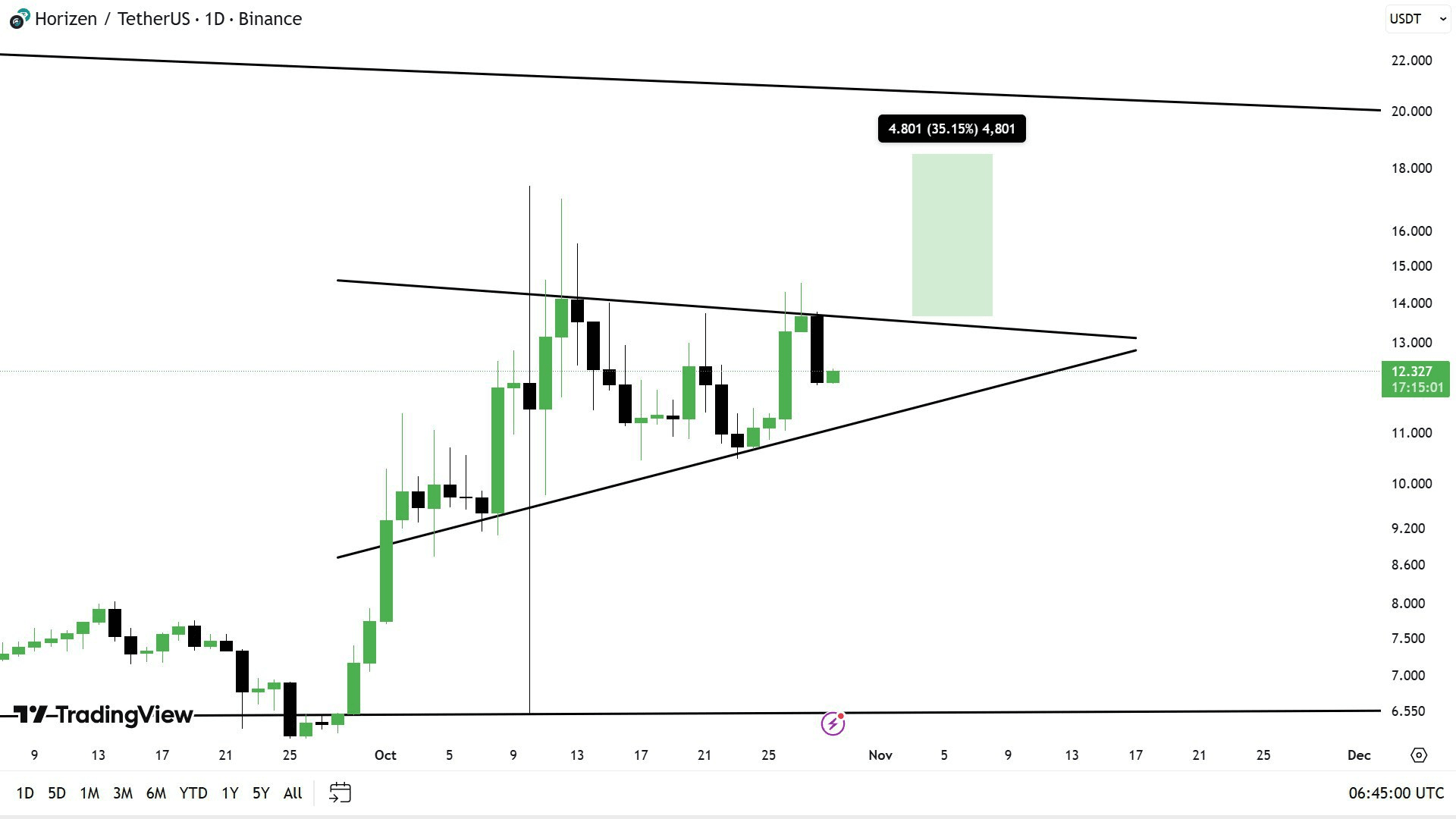 预期在成功突破的情况下获得 35% 的利润 💰,这将推动价格达到 $18 🏹