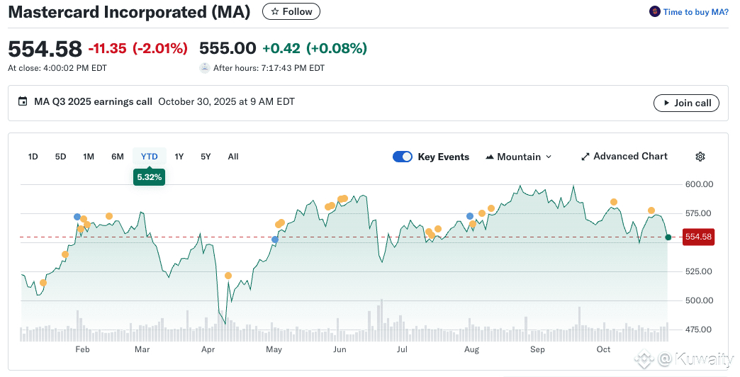أداء سهم ماستركارد منذ بداية العام / المصدر: ياهو فاينانس