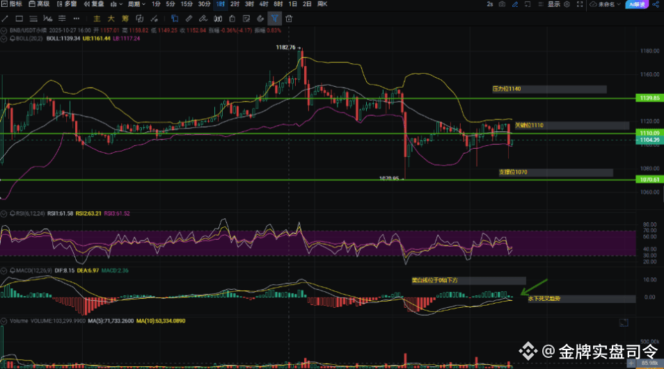 1070 这道 “生死线” 能扛住压力,BNB 会在 1070-1110 区间来回拉锯。这不是行情熄火,而是主力在等新消息催化,就像暴风雨前的寂静。