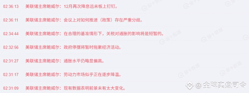 更要注意消息面的暗流:鲍威尔刚才讲话看着平淡,实则藏着杀机!“12 月降息没谱”= 短期没流动性;“通胀还高”= 加息预期没消;“政府停摆拖累经济”= 风险资产要遭殃!