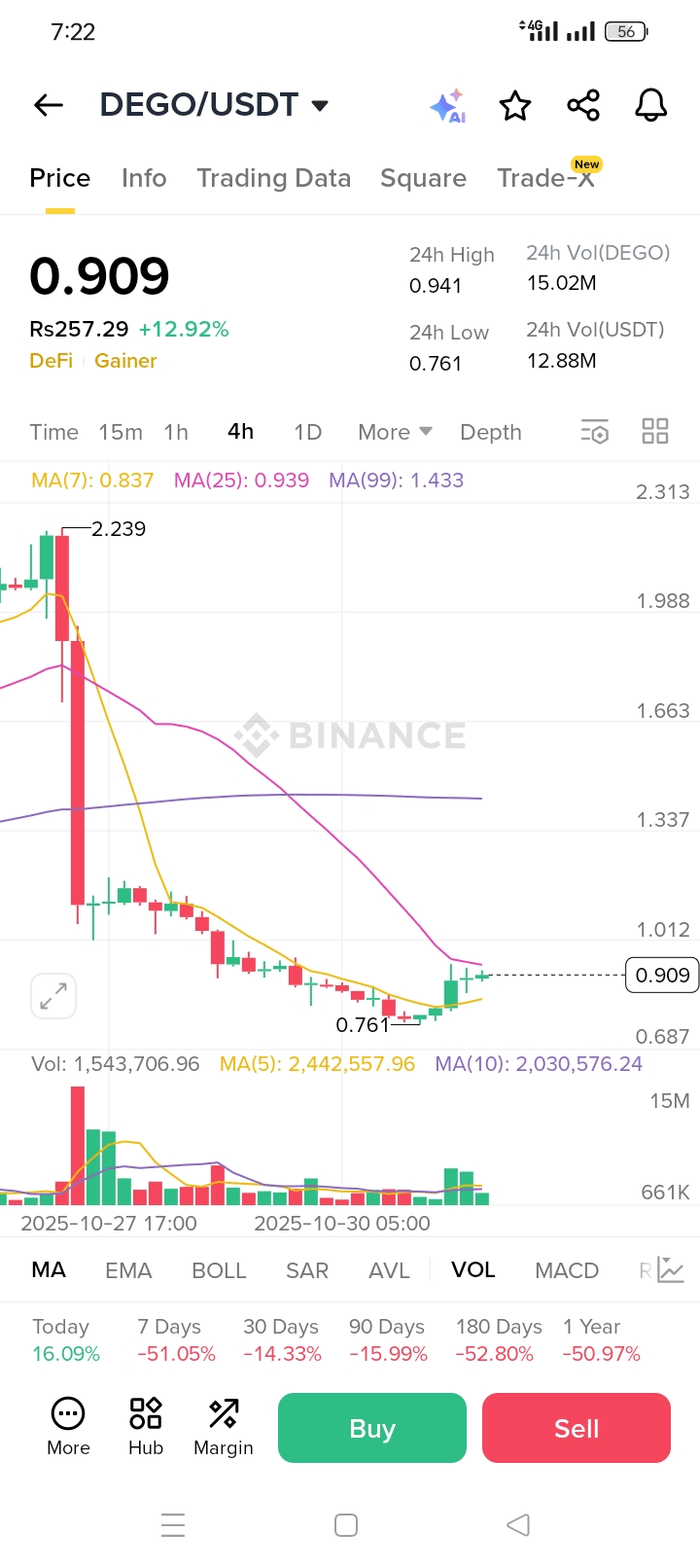 动量正在升温 — DEGO 看起来准备在最近的回调后强劲反弹。交易者关注这个区域以寻求潜在的反弹设置。