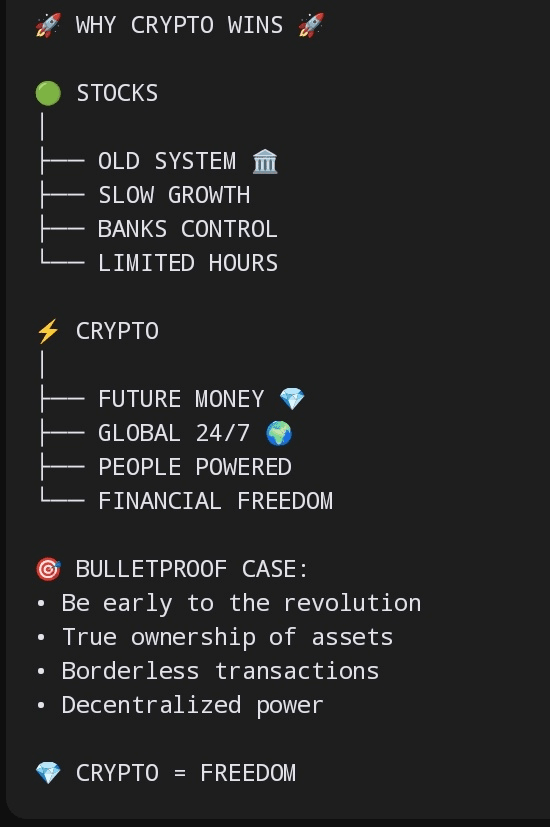 把股票市场看作是一条受监管的、成熟的高速公路,而加密市场则是狂野、未经探索的边境。两者都可以通往宝藏,但旅程的风险和规则截然不同。