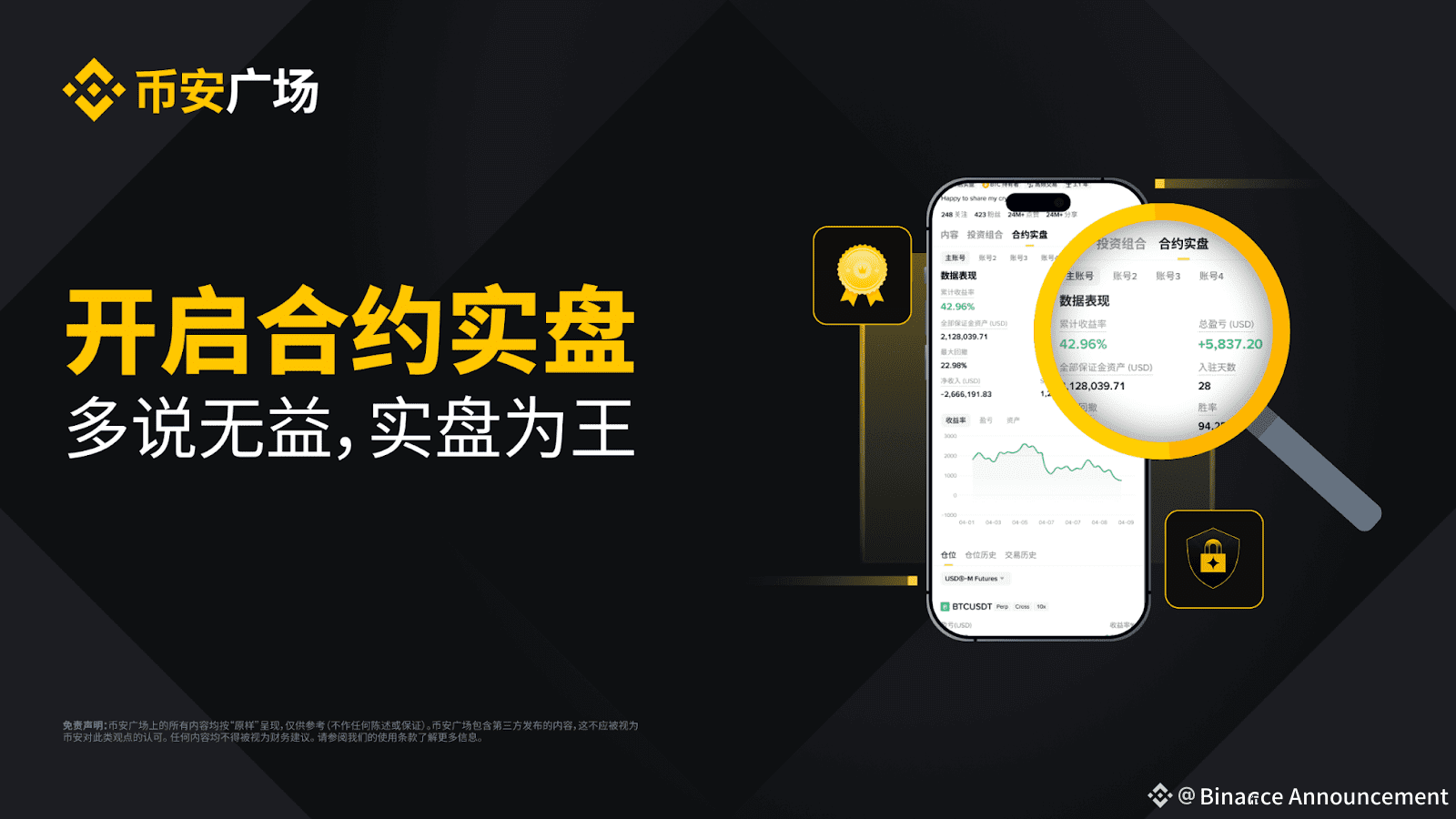 币安广场推出全新功能:合约实盘!该功能可以将您的合约实时交易直接展示在广场社区,让大家看到真实、经过认证的交易表现。