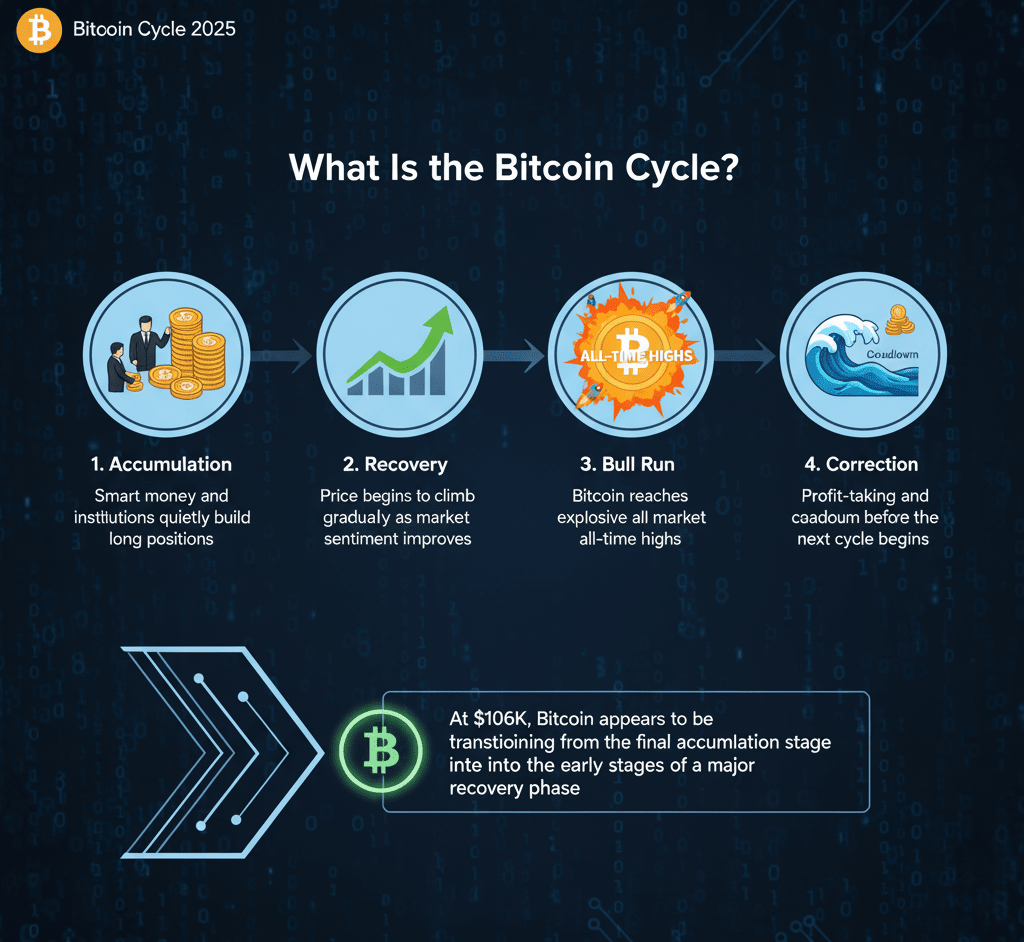 在$106K时,比特币似乎正在从最后的积累阶段过渡到主要恢复阶段的早期阶段。