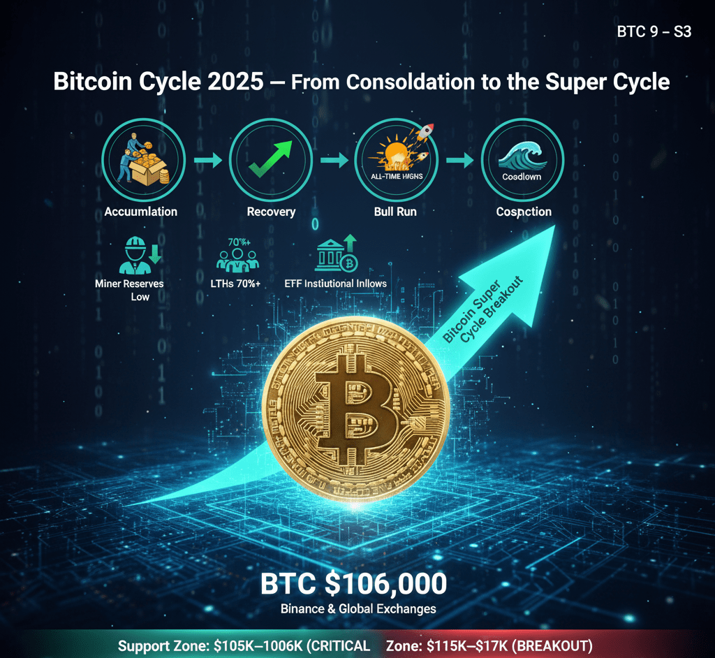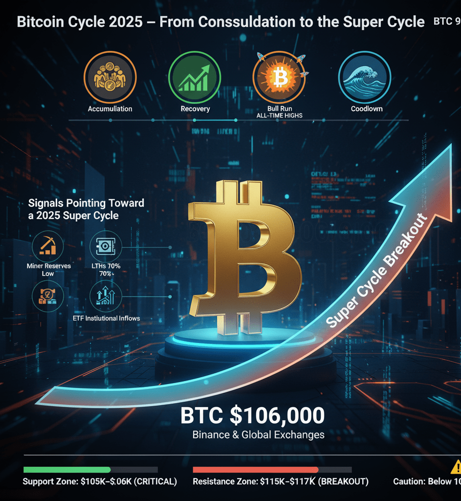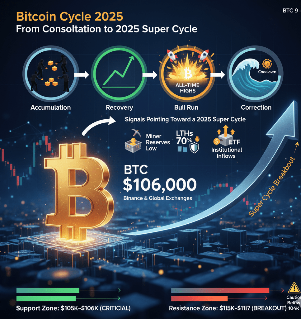 比特币 (BTC) 目前在币安及大多数全球交易所的交易价格约为 $106,000,并在 $105,000–$110,000 范围内横盘整理。