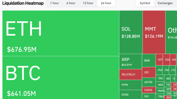 在交易中,Bybit 的清算金额为 6.28 亿美元,其次是 Hyperliquid 的 5.33 亿美元和 Binance 的 4.21 亿美元。最大的单一平仓是 HTX 上的一笔 1100 万美元的 BTC-USDT 多头。