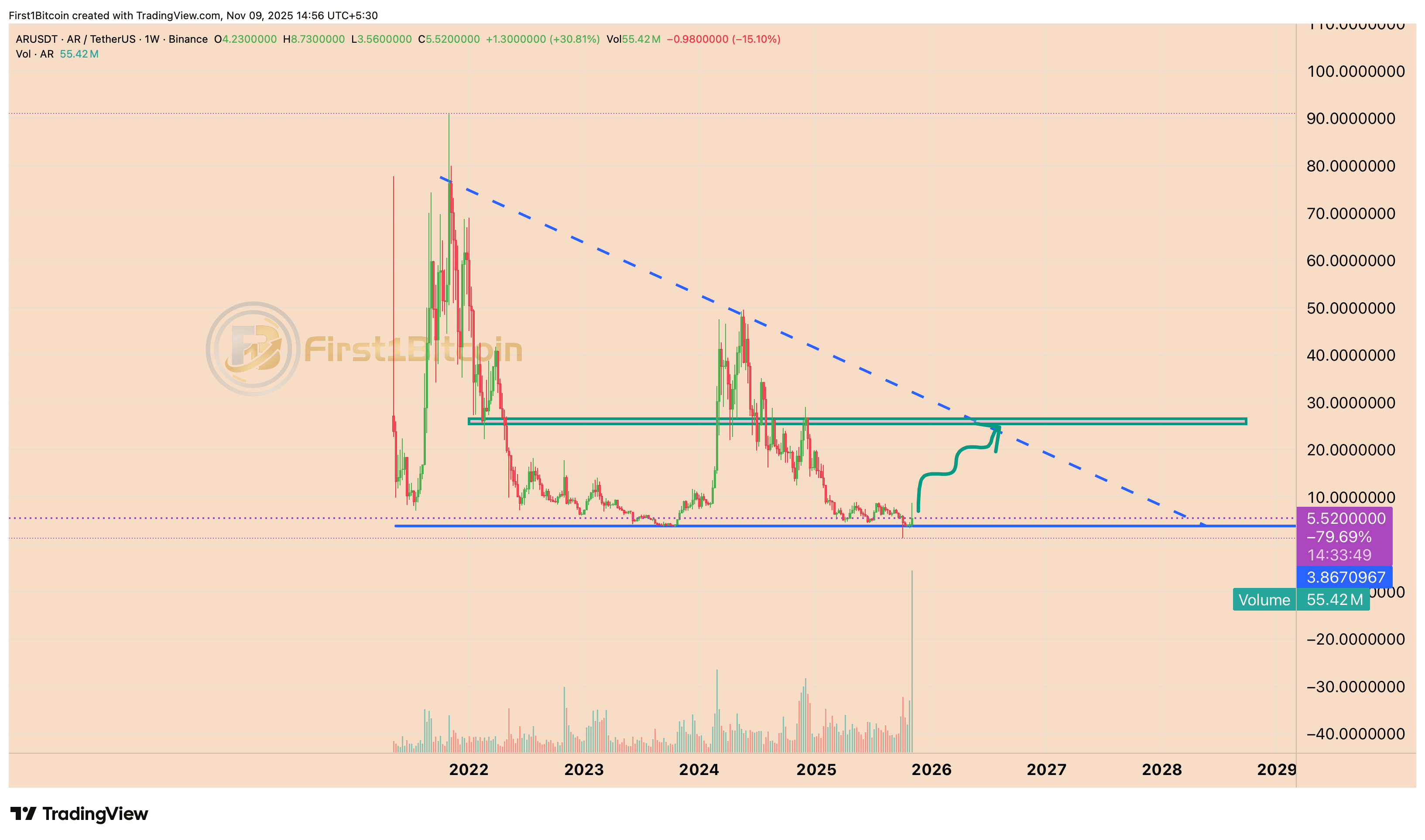 📊 $AR显示出在长期下行趋势后底部反转的早期迹象。