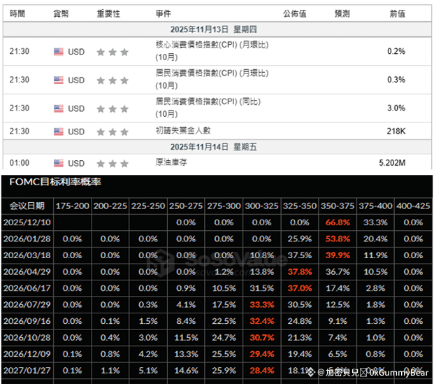 本週四(11/13)美國預計發布CPI數據,但目前市場焦點仍然放在美國政府關門是否結束,如果事件能順利結束,對於市場流動性、不穩定性都會帶來極大的緩解,有利於後市發展。