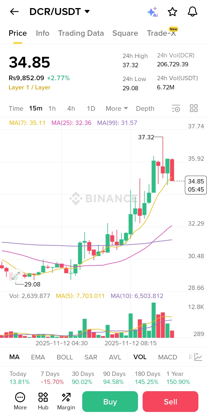 DCR 以近9%的涨幅强势回归,证明山寨币在这个市场中仍然有活力。如果动量继续,目标将在 $38 到 $40 USDT 之间很快可达。