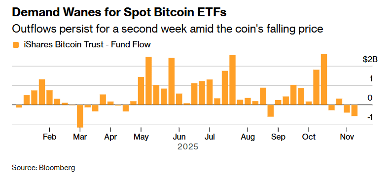 今年的大部分时间里,机构是比特币合法性与价格的中枢力量。ETF 整体吸收了超过 250 亿美元(彭博数据),资产规模一度升至约 1690 亿美元。持续不断的资金流入帮助市场将比特币重新定位为投资组合多元化工具——对冲通胀、货币贬值及政治动荡。但这一路径本就脆弱,如今再次出现裂痕,使市场暴露在一种更安静却不容忽视的风险中:机构“脱离参与”。