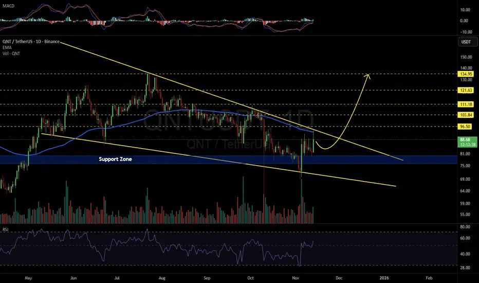 我注意到的:QNT已经成功突破了最近的整合区,暗示买家正在回归。成交量和价格的相互作用并没有大声喊出“突破”,但它闪烁着黄色警告灯。另一方面,如果市场转向,那同一区域可能会变成支撑陷阱。