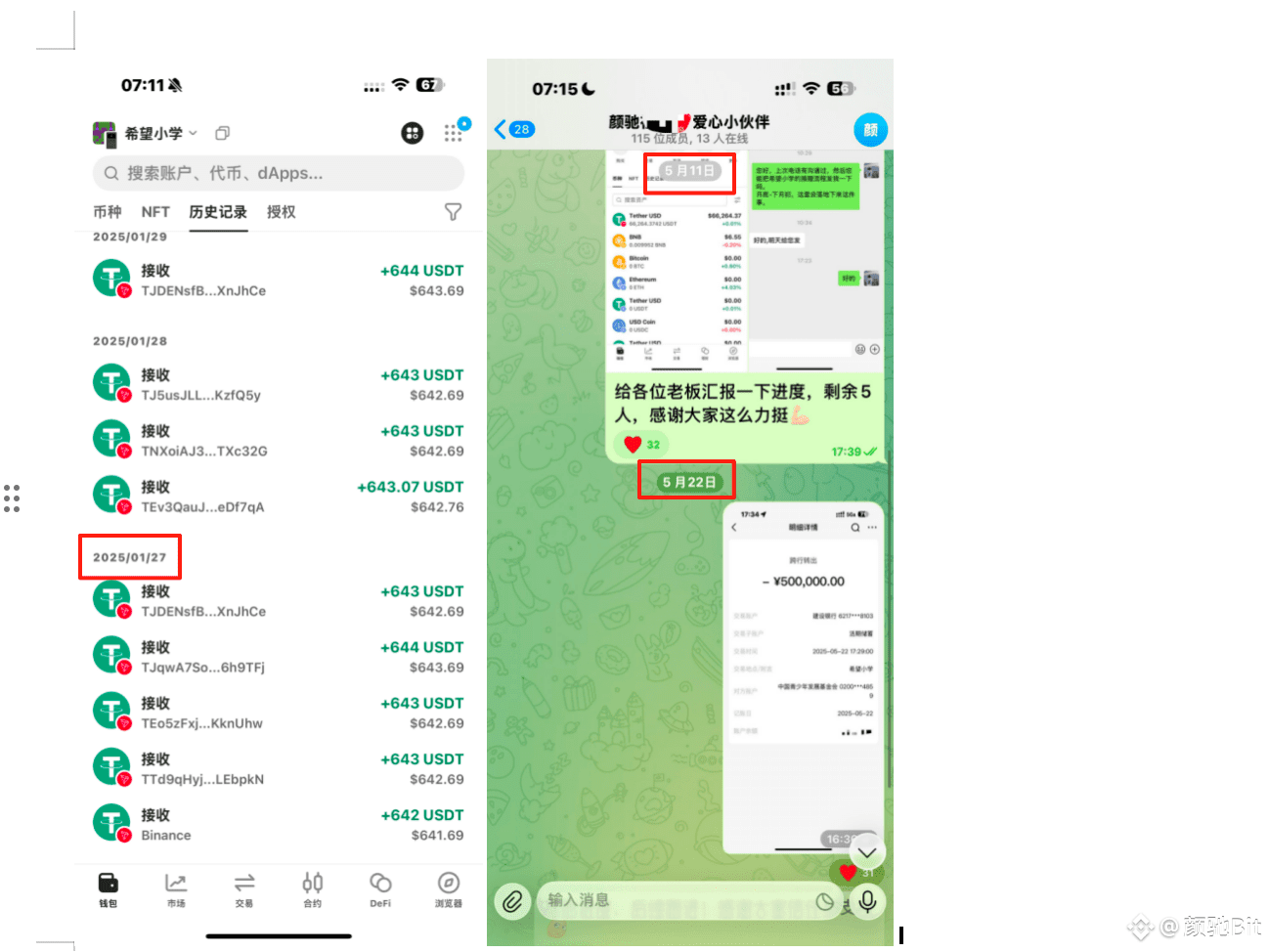 1、项目是在1月27日启动,我并未在任何平台做过希望小学项目的宣传,起初仅靠群里几个跟随几年的兄弟们对我的支持,相互相传,在5月中旬,完成107位爱心人士❤️