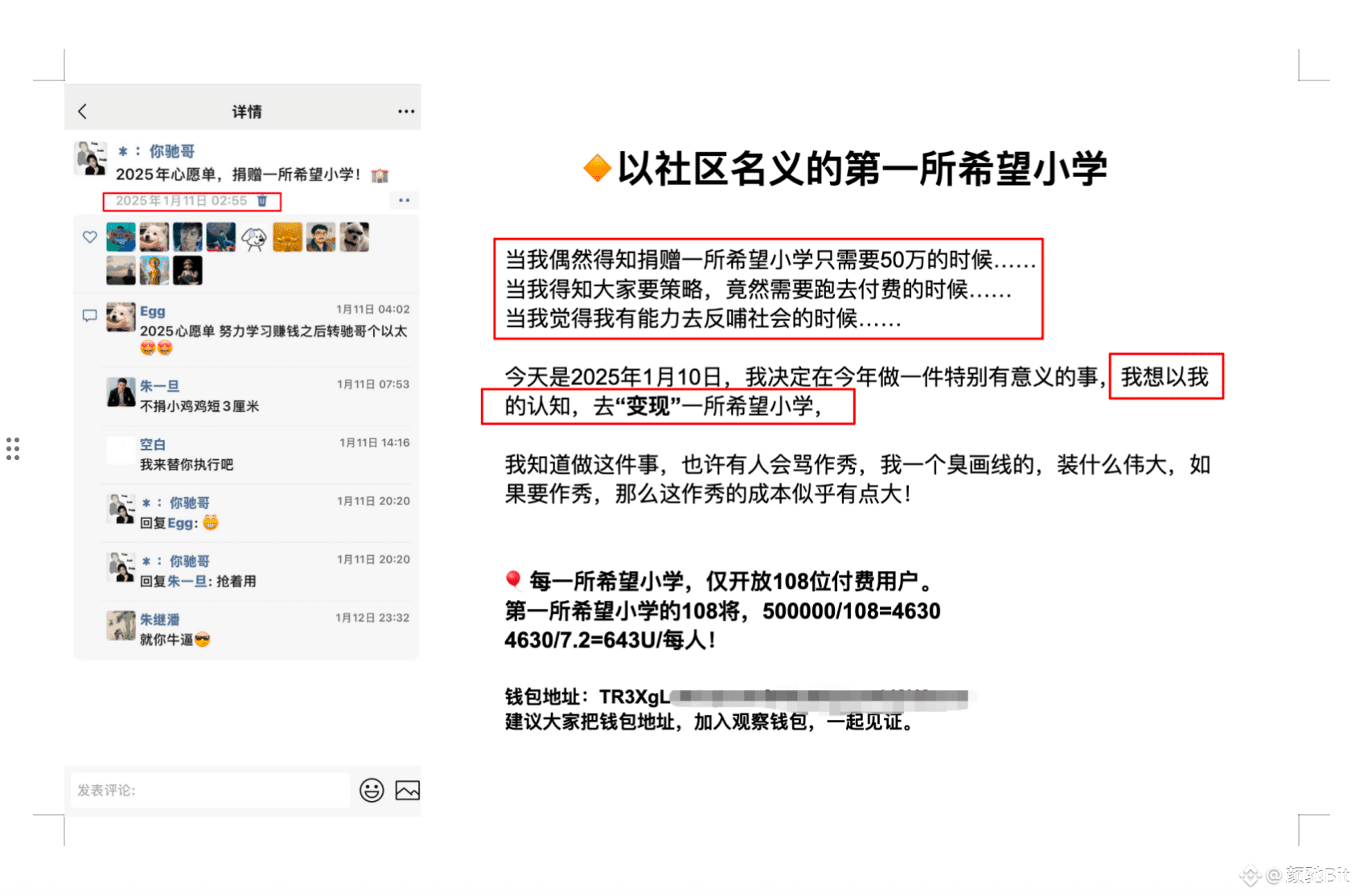 25年的1月,我分享了我今年的第一个心愿单,今年捐赠一所希望小学!