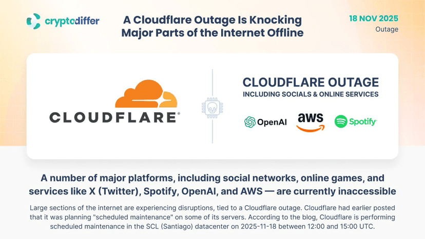 互联网的大范围正在经历与 Cloudflare 故障相关的问题。几个主要平台,包括社交媒体、在线游戏,以及像 X (Twitter)、Spotify、OpenAI 和 AWS 等服务 — 目前无法访问。Cloudflare 已经承认了这个问题并正在积极调查。