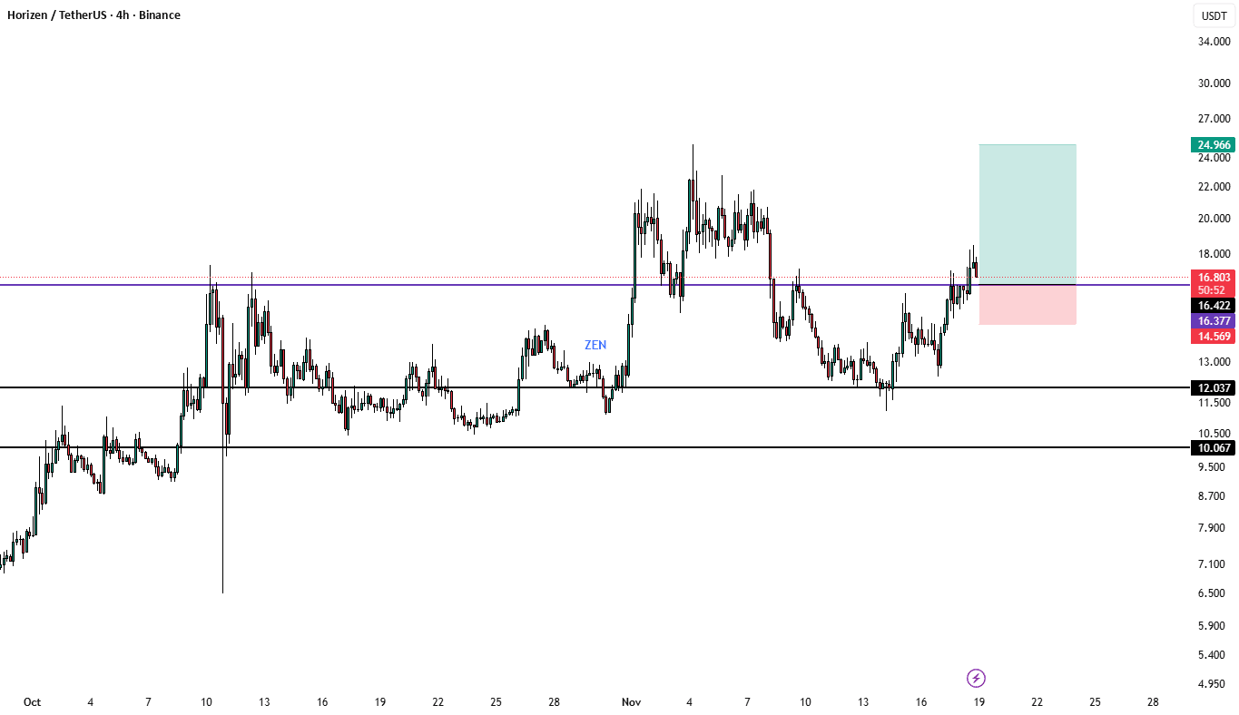 在我之前的ZEN帖子中,我分享了$16.40的翻转是ZEN想要上涨的关键。它在4小时的时间框架上未能保持在该价格之上。现在对我来说再次变得有趣。如果在一小时内,我们的日线收盘在紫色线$16.40区域之上,并且我们再次测试,我将考虑做多。