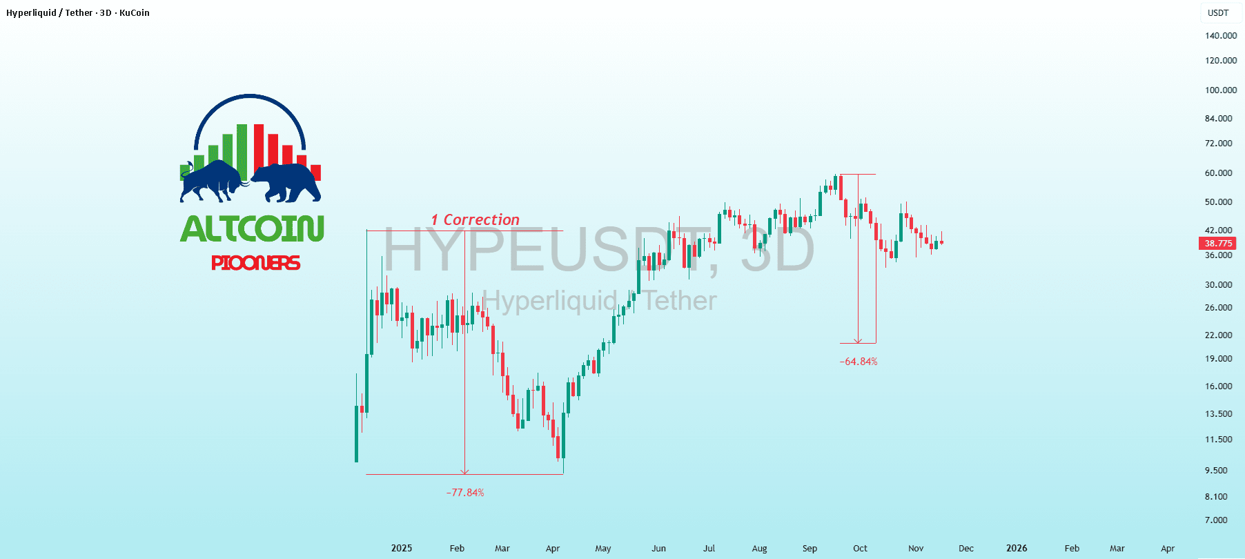 另类币先锋!🐂 HYPE刚刚在3天图表上完成了两次大幅修正: