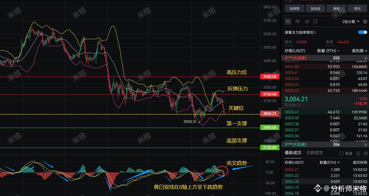 稳健投资: 如果你是中长线投资者,可以耐心等待ETH跌至2800附近,这时可能是较为理想的布局时机。