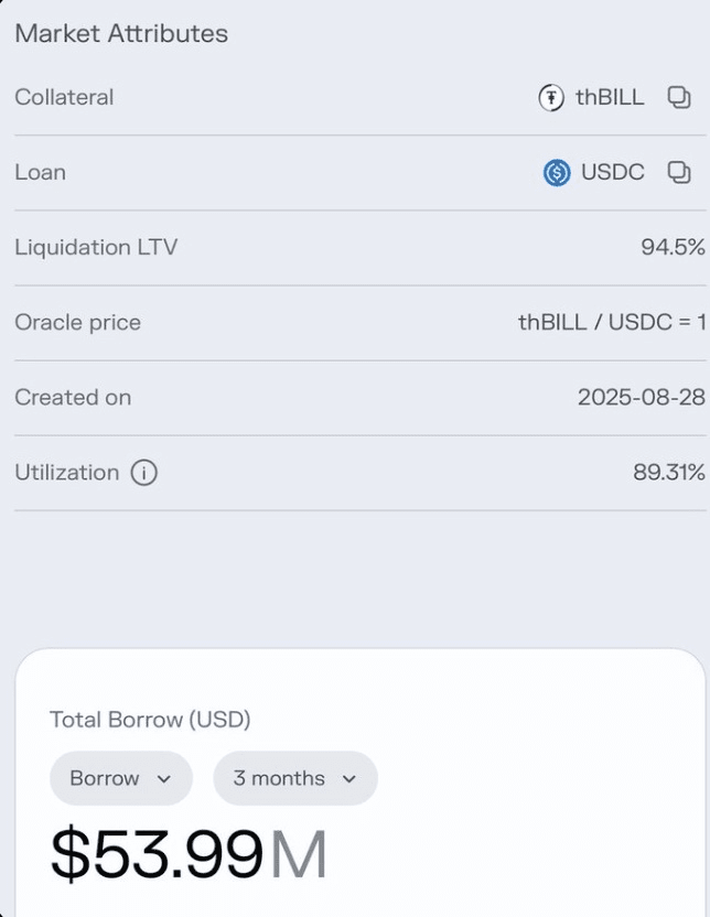 thBILL在Morpho上被接受为抵押,LTV为94.5%;由诸如MEV Gauntlet等信誉良好的实体策划。