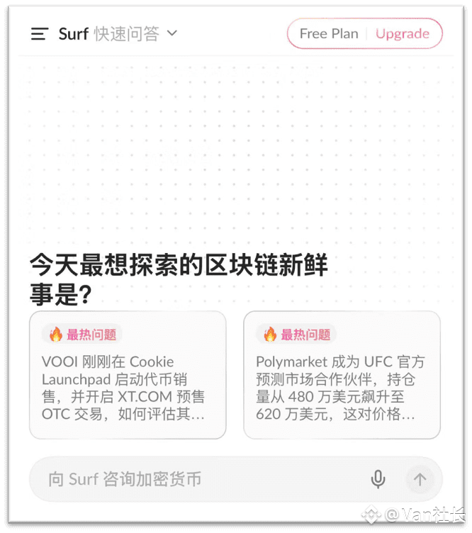 在2025年的币圈战场,信息就是你的武器!Surf AI,作为由Cyber训练的加密原生AI代理,一直以来以其多维数据融合能力,帮助无数币民从碎片化情报中提炼Alpha。