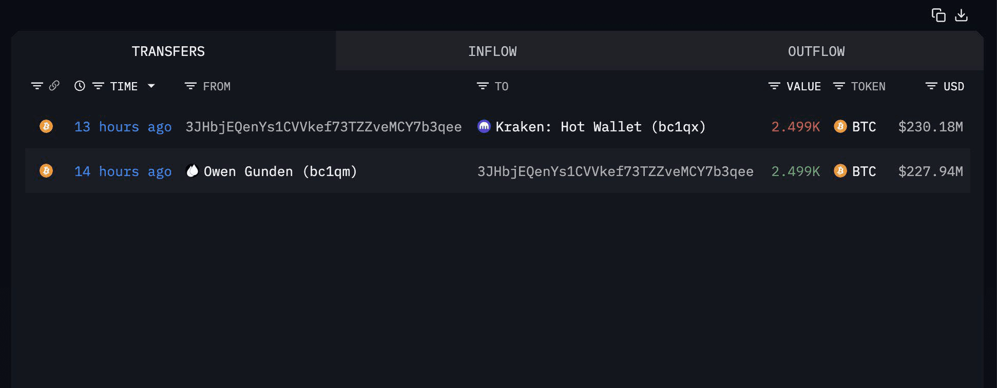 欧文·冈登,自2011年以来的早期比特币持有者,现在已出售其全部11,000 BTC资产,价值13亿美元。