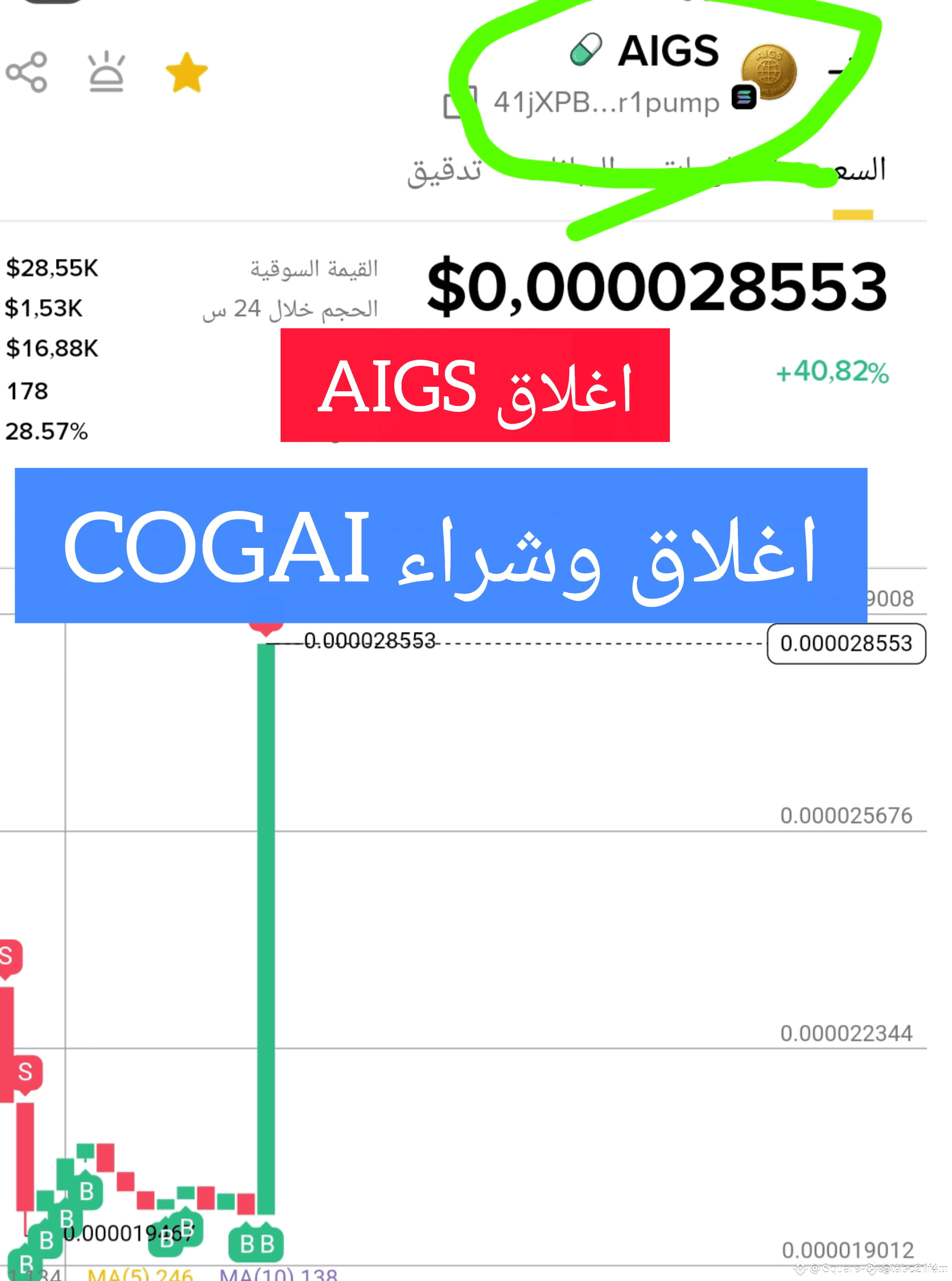عند سعر 0.000029 واستبدالها ب COGAI ❌️