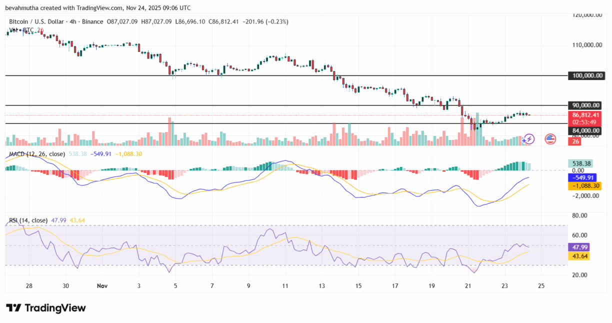 比特币在新的一周稳稳地保持在 $86,000 以上,经过一个适度但显著的周末反弹。这一恢复是在上周的急剧修正之后发生的,该修正将加密货币拖低至多周低点,并引发了交易者的恐慌。然而,这一次,市场显示出稳定的迹象——在过去的 24 小时内,总加密市场市值增长了大约 1%。