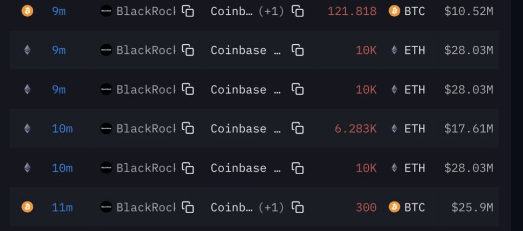世界上最大的资产管理公司刚刚在Coinbase上存入$232.9M的$BTC和$101.6M的$ETH——这是一种潜在卖方压力的经典迹象。