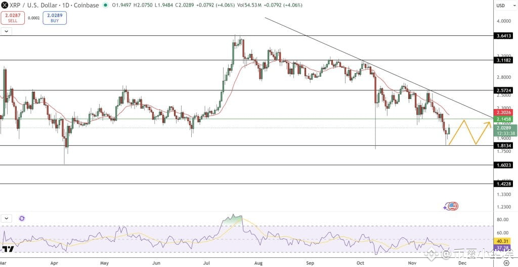 如果1.81美元保持不变,XRP可能开始出现更高的低点,这是趋势反转的第一步。交易者关注2.15–2.20美元作为初始上行检查点,更广泛的趋势线障碍则在2.30美元附近等待。若日收盘价高于该水平,将标志着XRP数月来的首次结构性改善,并重新打开第一季度2.57美元市场的路径。