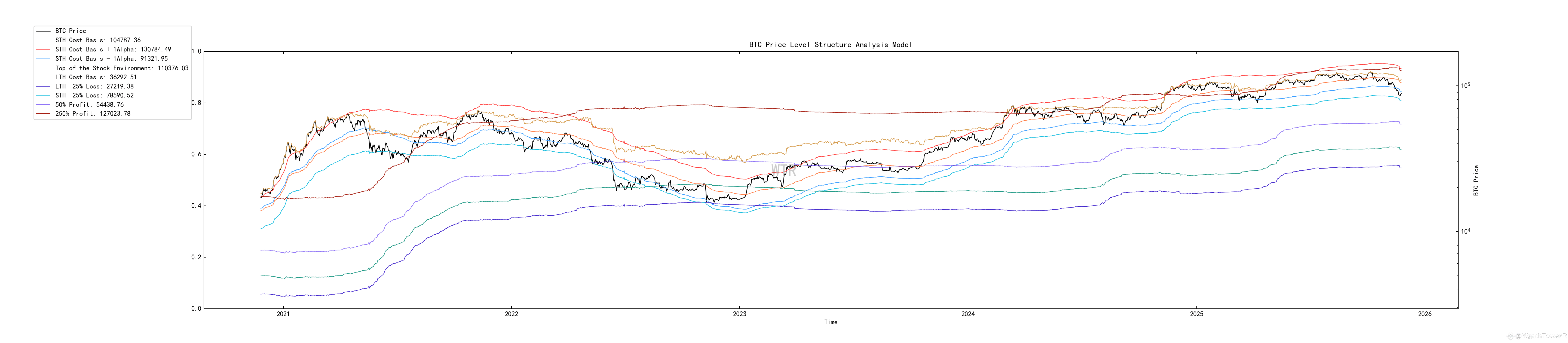 定价低于STH-Alpha下限91300,处于盘整状态,78500可能是新的下限抛售区。