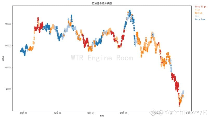 巨鲸评分降低,底部支撑削弱,市场稍好转时更显谨慎。
