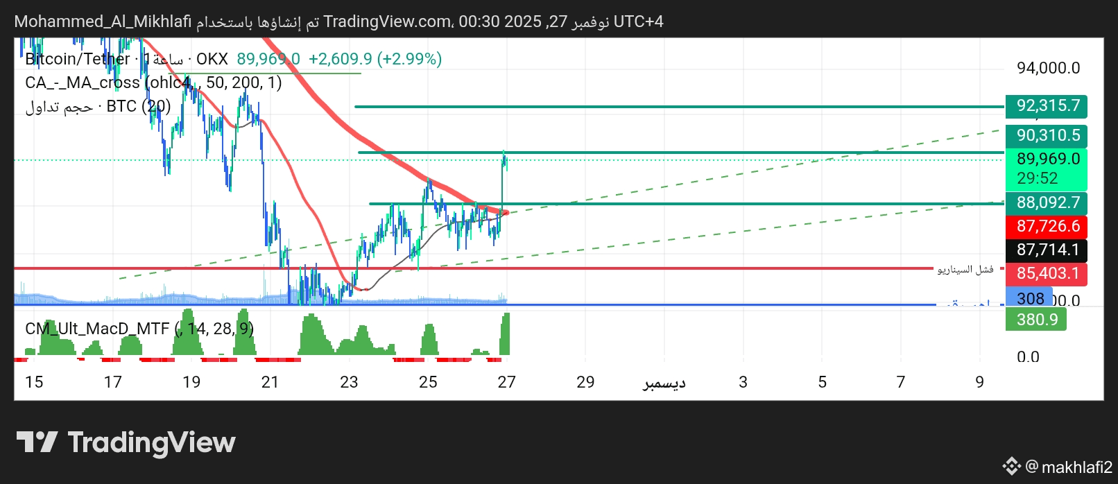 قد يواصل السعر نحو 95,000 – 96,000 كأول منطقة ارتداد بسبب وجود فجوة أسبوعية هناك.