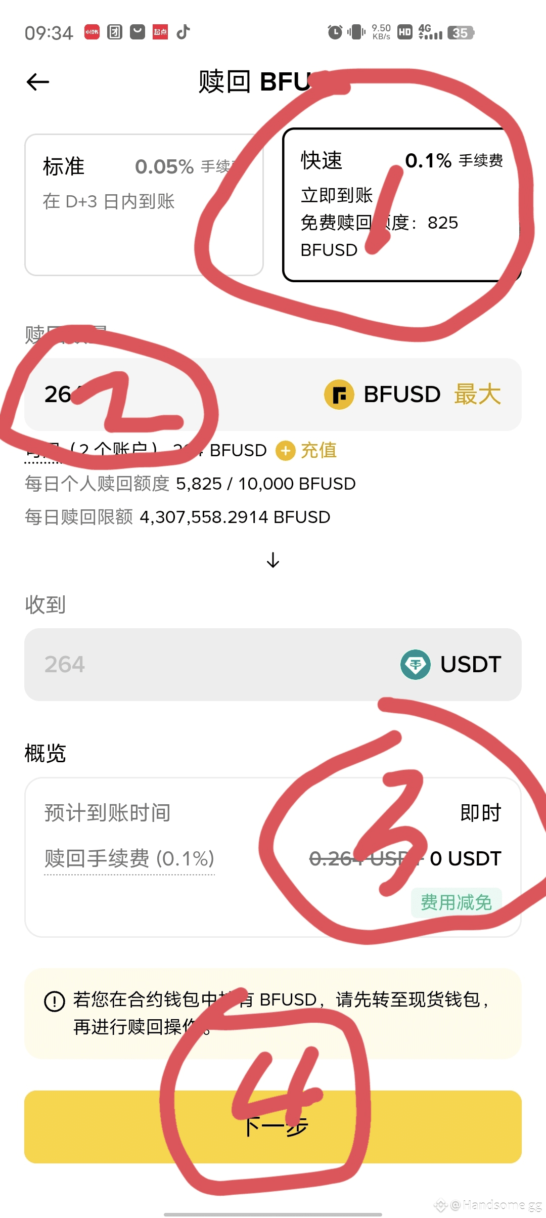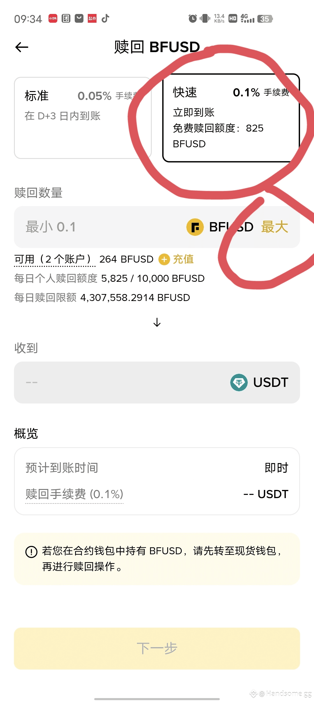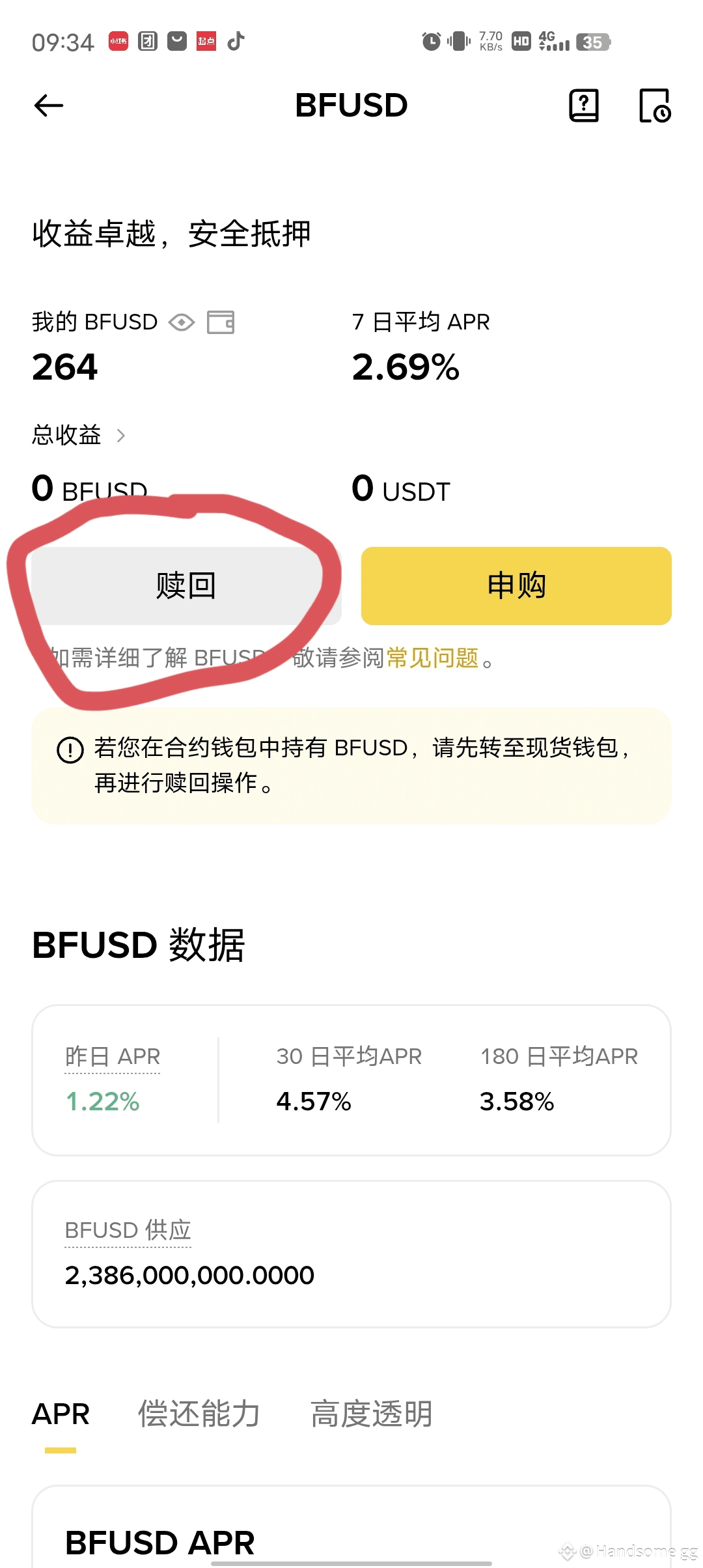 因为我账号只有200多u,所以无脑全部买入,如果你账号u比较多,也记得别买超过5000u,因为免费快速赎回额度只有5000u。