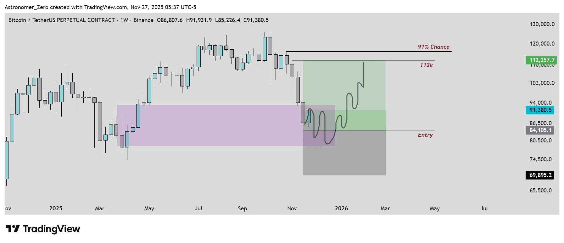 即使112k也是我们想要捕捉的一个大波动,这需要时间。低点的突破仍然可能发生。但我不认为这最可能是结果(30%的可能性会突破,70%的可能性不会突破)。如果真的发生了,我一定会在这个交易中加仓做多。