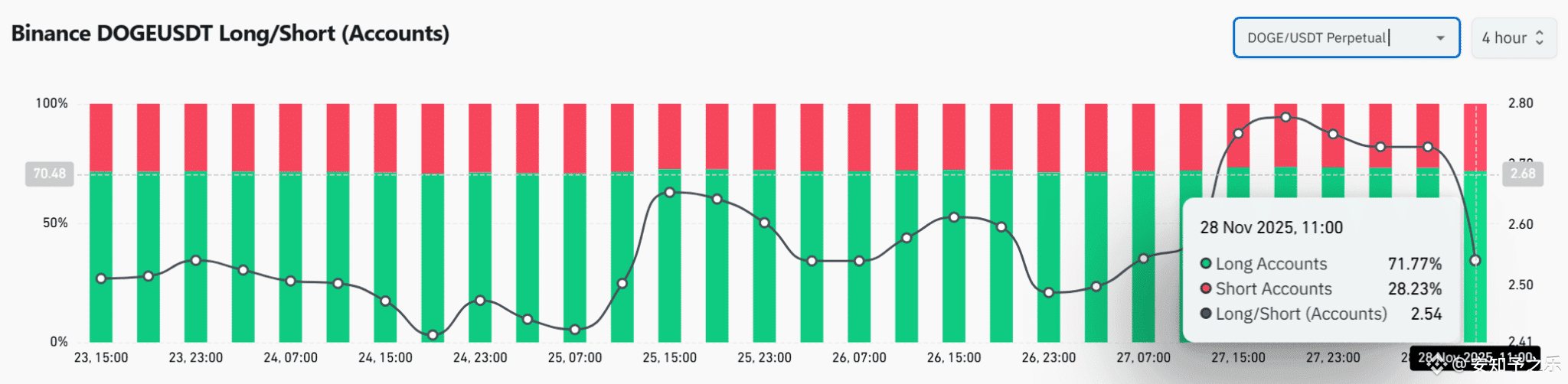 即便如此,目前的仓位结构整体还是偏多,加上情绪升温、技术面改善、CVD 也在走强,都在给 DOGE 的看涨方向加分。