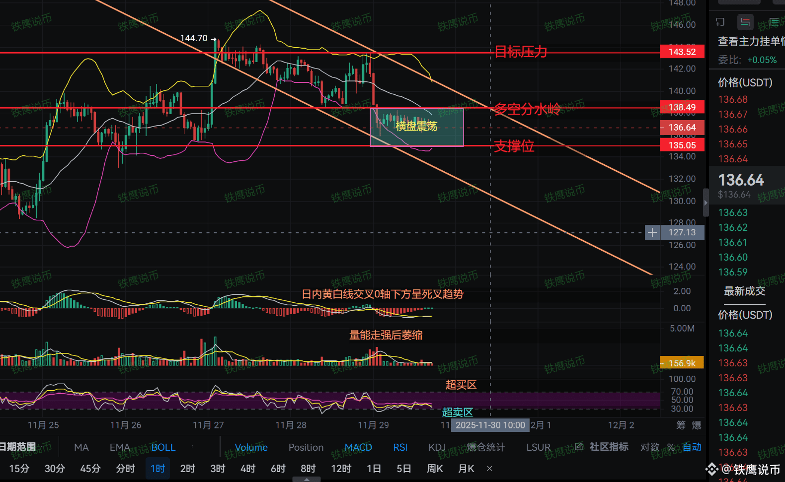 当前136-137横盘属于"下跌中继形态",预计最快今晚选择方向。若守住133,将反弹测试140压力;若失守133,将加速跌向127。记住:横盘越久,突破力度越大,务必带好止损!#美联储重启降息步伐