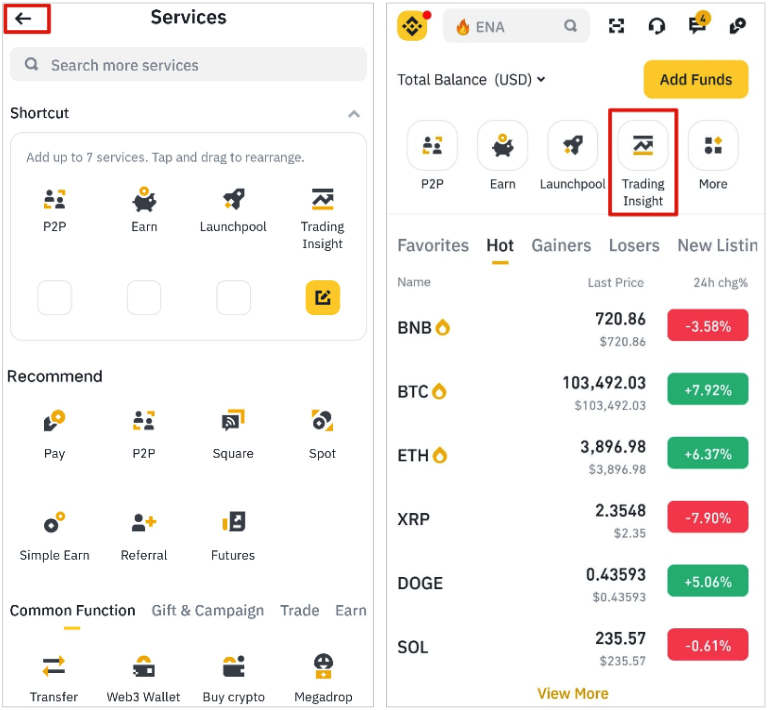 在【常用功能】標籤下,選擇【Trading Insight】並添加到快捷方式。